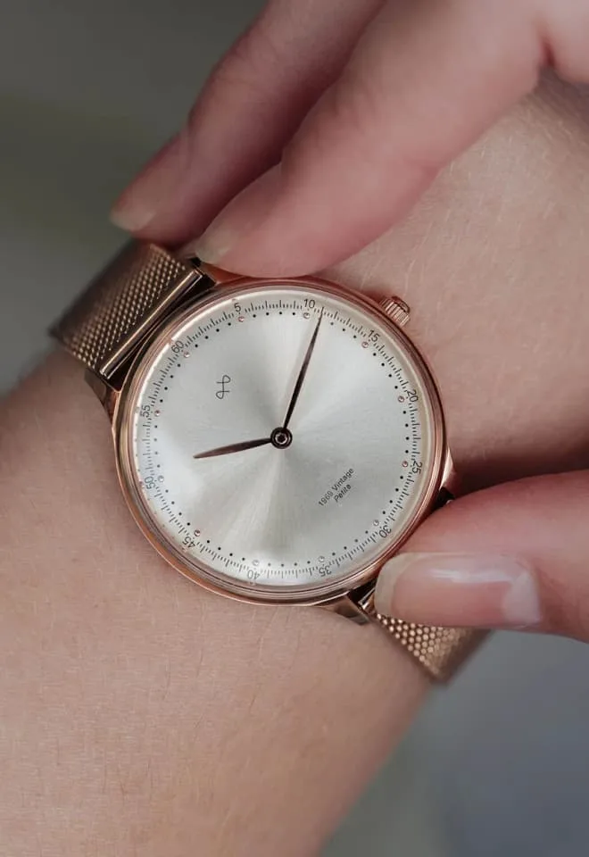 The watch is carefully designed with quality materials, such as the domed sapphire crystal, and the meticulous level of detail—from the dial to the delicate gold hour markers.